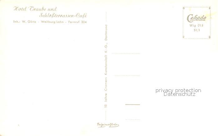 73646908 Weilburg Fliegeraufnahme mit Hotel Traube und Schlossterrassen Cafe postalisch nicht gelaufen Erhaltung siehe scans [WerneD78] KatCode: 11110006533017