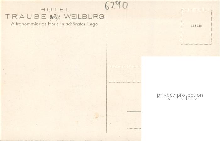 73697725 Weilburg Gesamtansicht und Hotel Traube postalisch nicht gelaufen Erhaltung siehe scans [LiesaD40] KatCode: 11110006533017