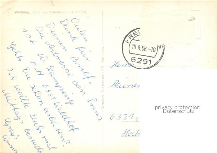 72995692 alte Postkarte Weilburg Gesamtansicht postalisch gelaufen Erhaltung siehe scans [AndreD76] KatCode: 11110006533017