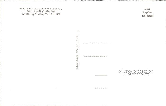 72130445 Weilburg Hotel Guntersau Kupfertiefdruck postalisch nicht gelaufen KatCode: 11110006533017