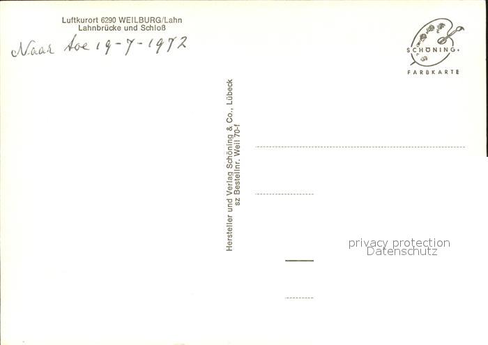 72480764 Weilburg Lahnbruecke Schloss postalisch nicht gelaufen Erhaltung siehe scans KatCode: 11110006533017