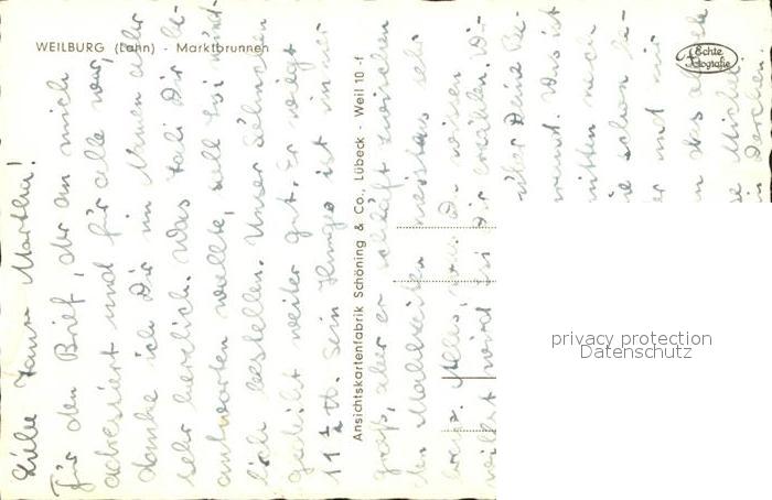72126314 Weilburg Marktbrunnen postalisch nicht gelaufen Erhaltung siehe scans KatCode: 11110006533017