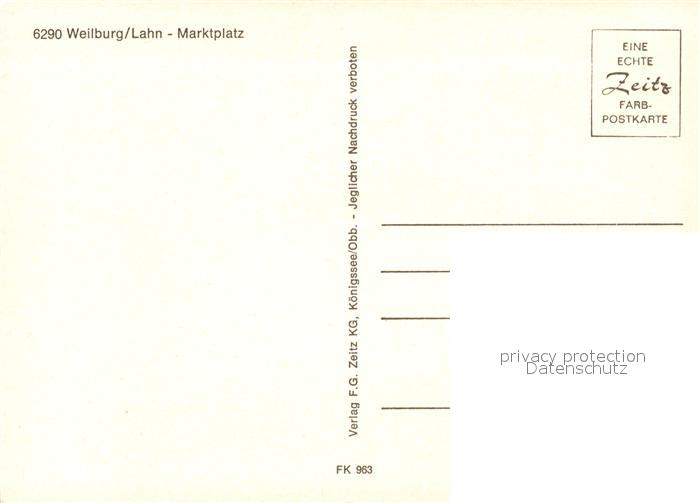 73119989 Weilburg Marktplatz postalisch nicht gelaufen Erhaltung siehe scans [KathaD81] KatCode: 11110006533017