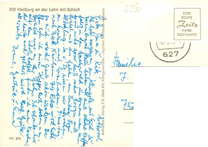 73936077 alte Postkarte Weilburg Panorama mit Schloss postalisch gelaufen Erhaltung siehe scans [WerneD78] KatCode: 11110006533017