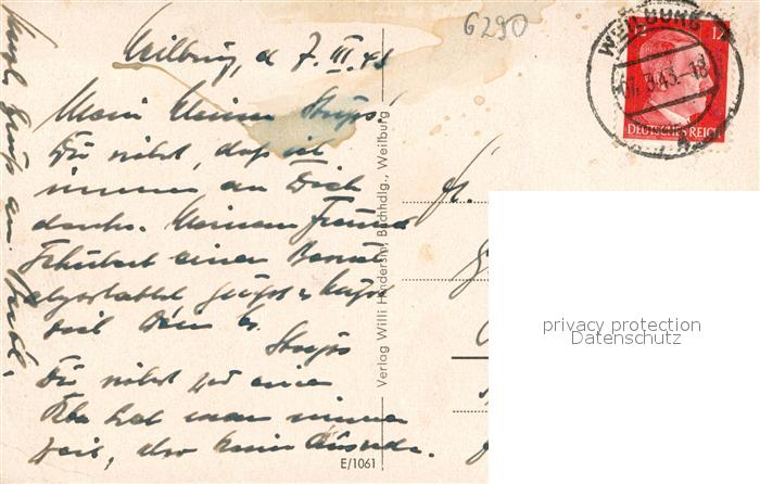 73697728 alte Postkarte Weilburg Schloss postalisch gelaufen Erhaltung siehe scans [LiesaD40] KatCode: 11110006533017