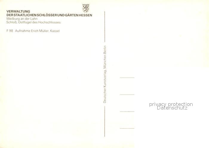 73270713 Weilburg Schloss Ostfluegel Hochschloss postalisch nicht gelaufen Erhaltung siehe scans [KathaD81] KatCode: 11110006533017