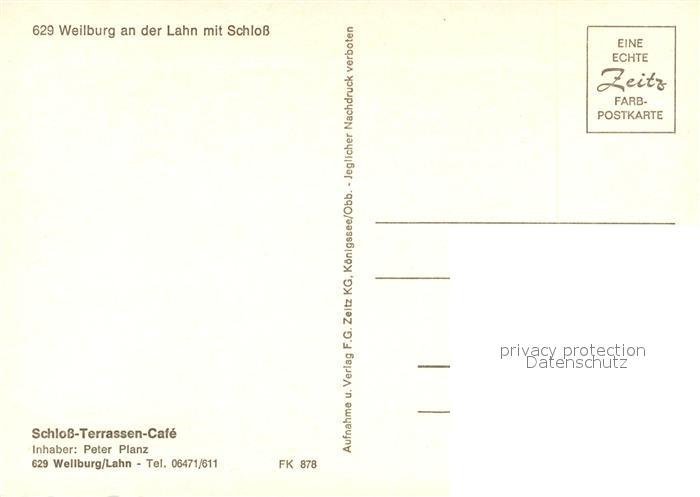 73168366 Weilburg Schloss Terrassen Cafe postalisch nicht gelaufen Erhaltung siehe scans [KathaD81] KatCode: 11110006533017