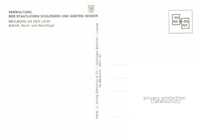 72769055 Weilburg Schloss Verwaltung der Staatlichen Schloesser und Gaerten Hessen postalisch nicht gelaufen Erhaltung siehe scans [FriedD77] KatCode: 11110006533017