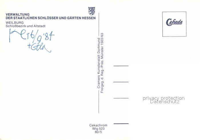 72857071 Weilburg Schlossbezirk und Altstadt Fliegeraufnahme postalisch nicht gelaufen Erhaltung siehe scans [FriedD77] KatCode: 11110006533017