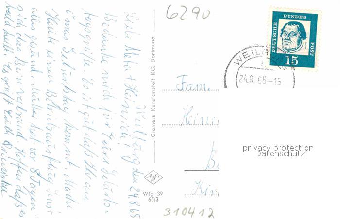 72863811 alte Postkarte Weilburg Schlossblick Landtor Schlossgarten Fliegeraufnahme postalisch gelaufen Erhaltung siehe scans [WerneD78] KatCode: 11110006533017