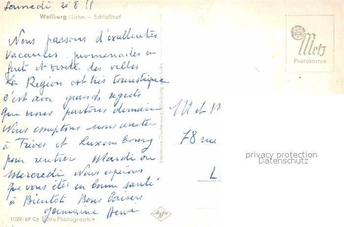 72724474 Weilburg Schlosshof postalisch nicht gelaufen Erhaltung siehe scans [WerneD78] KatCode: 11110006533017