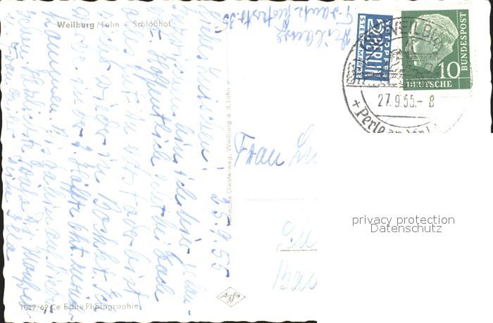 72253043 alte Postkarte Weilburg Schlosshof postalisch gelaufen Erhaltung siehe scans KatCode: 11110006533017