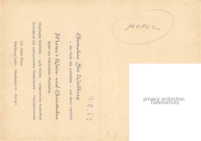 74059394 Weilburg Schlosshof Mosers Wein und Bierstuben postalisch nicht gelaufen Erhaltung siehe scans [WerneD78] KatCode: 11110006533017