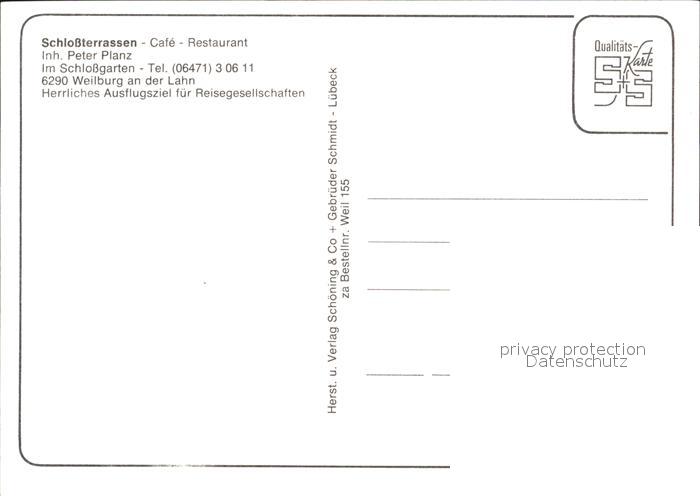72032663 Weilburg Schlossterrassen Cafe Restaurant Schlossgarten postalisch nicht gelaufen Erhaltung siehe scans KatCode: 11110006533017