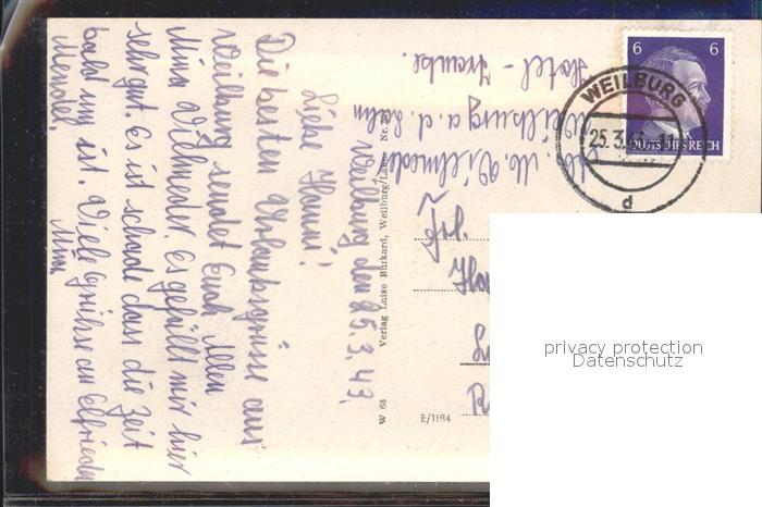72142263 alte Postkarte Weilburg Totalansicht postalisch gelaufen Erhaltung siehe scans KatCode: 11110006533017