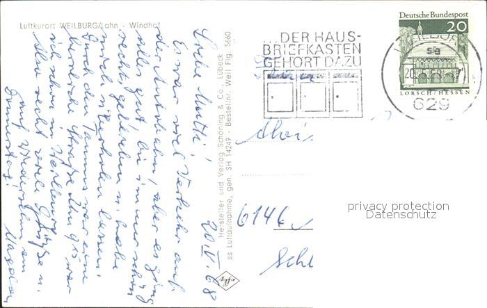 72130448 alte Postkarte Weilburg Windhof Fliegeraufnahme postalisch gelaufen Erhaltung siehe scans KatCode: 11110006533017