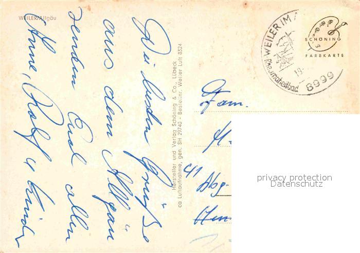 72728966 alte Postkarte Weiler Allgaeu Fliegeraufnahme postalisch gelaufen Erhaltung siehe scans [AndreD76] KatCode: 11110009776129