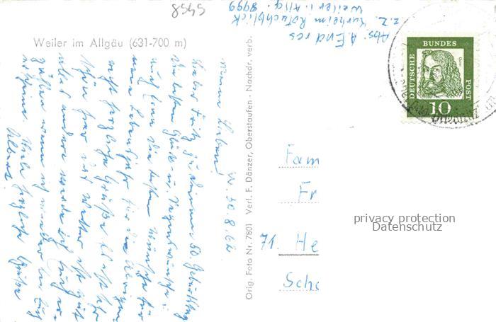 74101237 alte Postkarte Weiler Allgaeu Fliegeraufnahme mit Nagelfluhkette postalisch gelaufen Erhaltung siehe scans [WerneD78] KatCode: 11110009776129