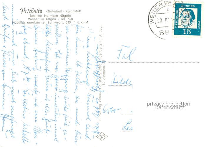 73646036 alte Postkarte Weiler Allgaeu Naturheil-Kuranstalt Priessnitz postalisch gelaufen Erhaltung siehe scans [FriedD77] KatCode: 11110009776129
