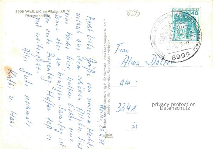 Weiler Allgaeu Ortsansicht mit Kirche Rheumaheilbad postalisch gelaufen Erhaltung siehe scans [FriedD77] alte Postkarte Frie Katcode 11110009776129