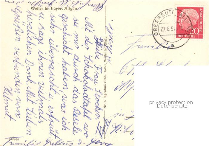 73868881 alte Postkarte Weiler Allgaeu Panorama postalisch gelaufen Erhaltung siehe scans [WerneD78] KatCode: 11110009776129