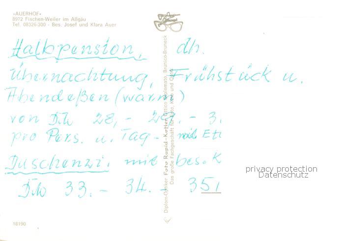 73803485 Weiler Fischen Auerhof postalisch nicht gelaufen Erhaltung siehe scans [WerneD78] KatCode: 11110009780121