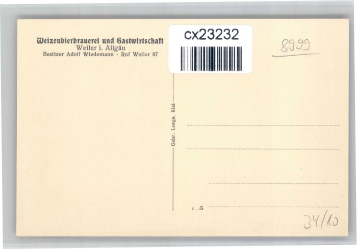 30751964 Weiler-Simmerberg Weiler Allgaeu Weizenbier Brauerei postalisch nicht gelaufen KatCode: 11110009776129