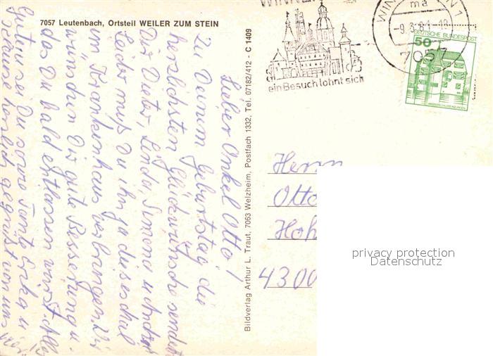 72839314 alte Postkarte Weiler zum Stein Sportanlagen Tennisplatz postalisch gelaufen Erhaltung siehe scans [FriedD77] KatCode: 11110008119042