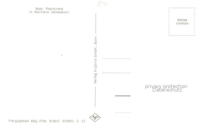 33663796 Weilheim Donauwoerth Katholische Pfarrkirche Fliegeraufnahme postalisch nicht gelaufen Erhaltung siehe scans [FriedD77] KatCode: 11110009779186