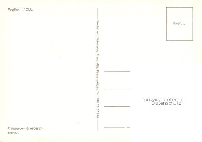 73031317 Weilheim Oberbayern Fliegeraufnahme postalisch nicht gelaufen Erhaltung siehe scans [KathaD81] KatCode: 11110009190157