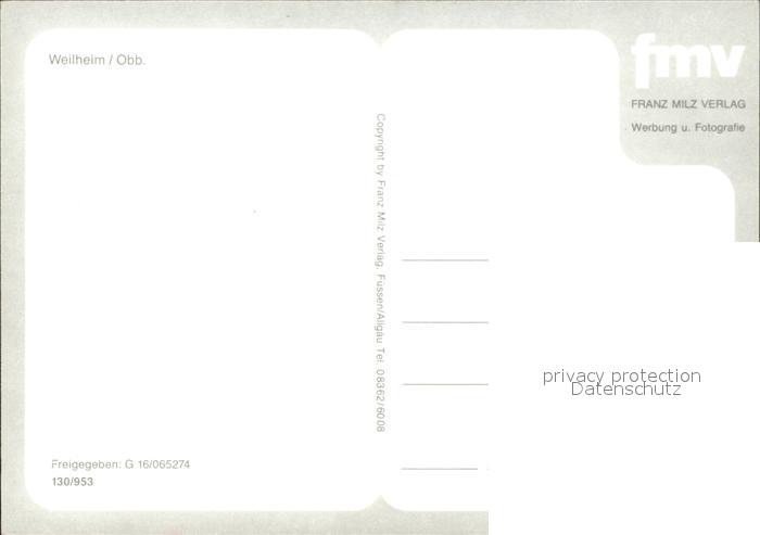 72103485 Weilheim Oberbayern Fliegeraufnahme postalisch nicht gelaufen Erhaltung siehe scans KatCode: 11110009190157
