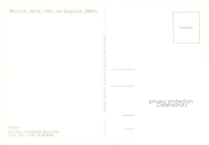 73835202 Weilheim Oberbayern Fliegeraufnahme mit Zugspitze postalisch nicht gelaufen Erhaltung siehe scans [WerneD78] KatCode: 11110009190157