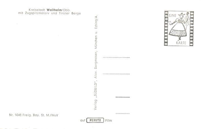 73899609 Weilheim Oberbayern Fliegeraufnahme mit Zugspitzmassiv und Tiroler Bergen postalisch nicht gelaufen Erhaltung siehe scans [FriedD77] KatCode: 11110009190157