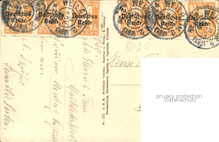31722645 alte Postkarte Weilheim Oberbayern Frichen Zugspitze Kreuzspitze postalisch gelaufen KatCode: 11110009190157