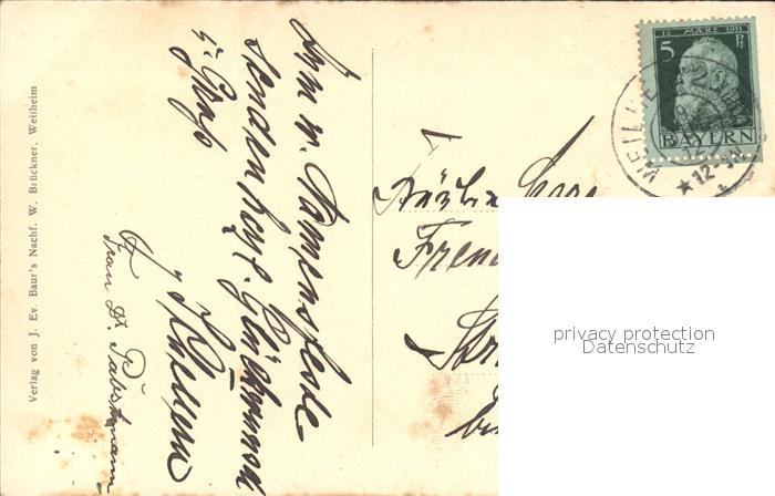 72130485 alte Postkarte Weilheim Oberbayern Hauptplatz Kirche Brunnen postalisch gelaufen KatCode: 11110009190157