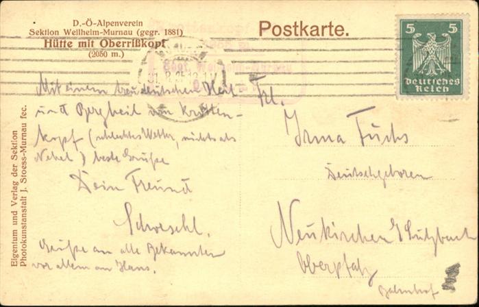 40997204 Weilheim Oberbayern Hütte am Oberrisskopf KatCode 11110009190157