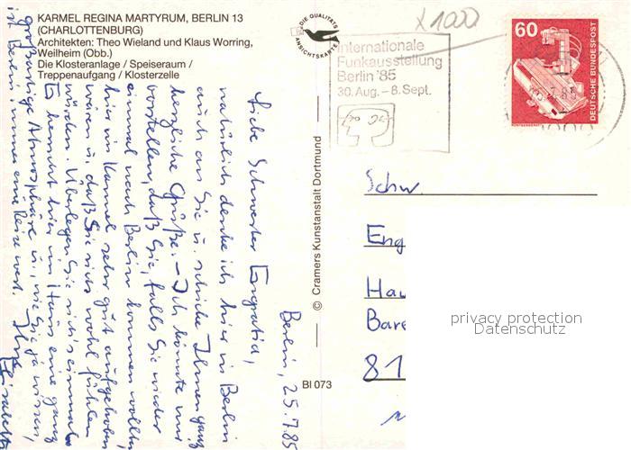 72905560 alte Postkarte Weilheim Oberbayern Karmel Regina Martyrum postalisch gelaufen Erhaltung siehe scans [LiesaD40] KatCode: 11110009190157