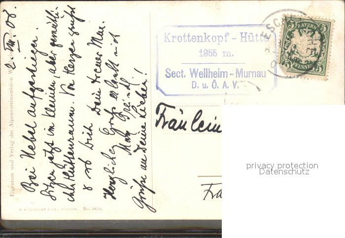 71907017 alte Postkarte Weilheim Oberbayern Krottenkopfhuette Panorama postalisch gelaufen Erhaltung siehe scans KatCode: 11110009190157