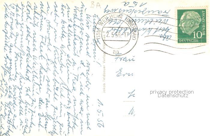 33659119 alte Postkarte Weilheim Oberbayern Ortspartie mit Brunnen postalisch gelaufen Erhaltung siehe scans [WerneD78] KatCode: 11110009190157