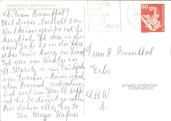 72555588 alte Postkarte Weilheim Oberbayern Stadtpfarrkirche Maria Himmelfahrt postalisch gelaufen Erhaltung siehe scans [AndreD76] KatCode: 11110009190157