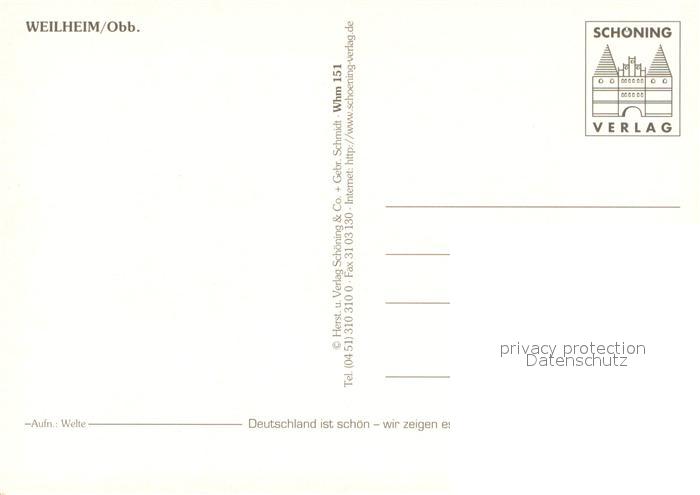 73737104 Weilheim Oberbayern Starnberger See Ammersee Dietlhofersee Kloster Andechs Polling St Salvator Admiral Hipper Strasse Mariahilfkirche Rathausplatz Obere Stadt Franziskanerkloster Vierjahreszeitenbrunnen postalisch nicht gelaufen Erhaltung siehe scans [FriedD77] KatCode: 11110009190157
