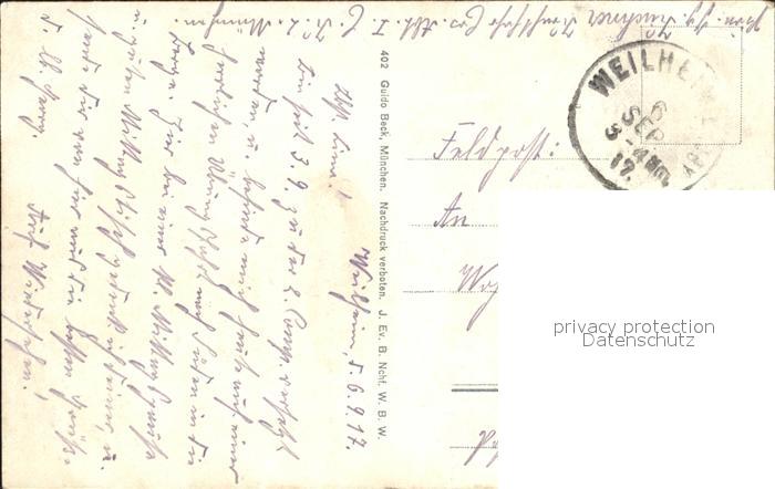 32185634 alte Postkarte Weilheim Oberbayern Zugspitze Kreuzspitze Dreitorspitze postalisch gelaufen Feldpost Erhaltung siehe scans KatCode: 11110009190157