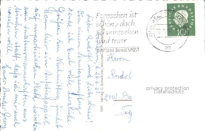 72183395 alte Postkarte Weilheim Oberbayern postalisch gelaufen Erhaltung siehe scans KatCode: 11110009190157