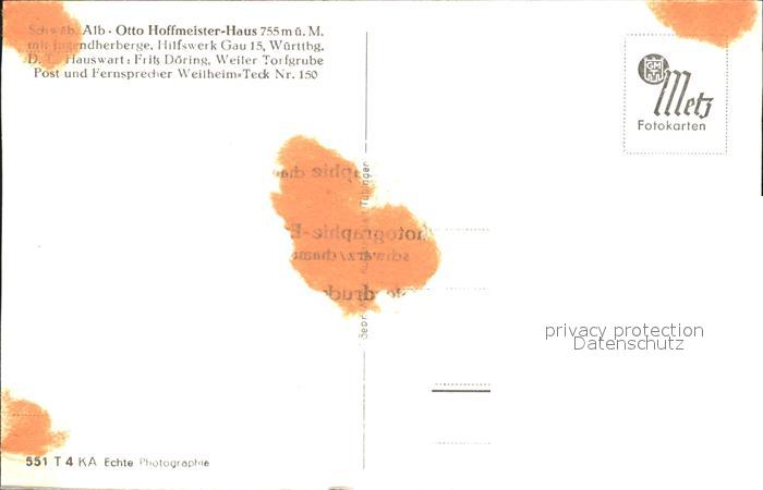 41760290 Weilheim Teck Otto Hoffmeister-Haus Jugendherberge postalisch nicht gelaufen Erhaltung siehe scans KatCode: 11110008116070