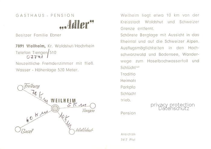 73830395 Weilheim Waldshut Gasthaus Pension Adler Gastraeume Panorama postalisch nicht gelaufen Werbekarte (keine Postkarte) Erhaltung siehe scans [FriedD77] KatCode: 11110008337118