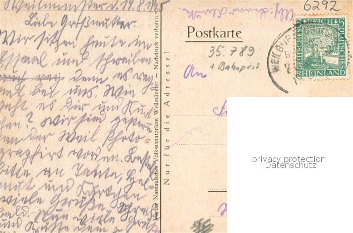 73749295 alte Postkarte Weilmuenster Baden in der Weil postalisch gelaufen Erhaltung siehe scans [WerneD78] KatCode: 11110006533018