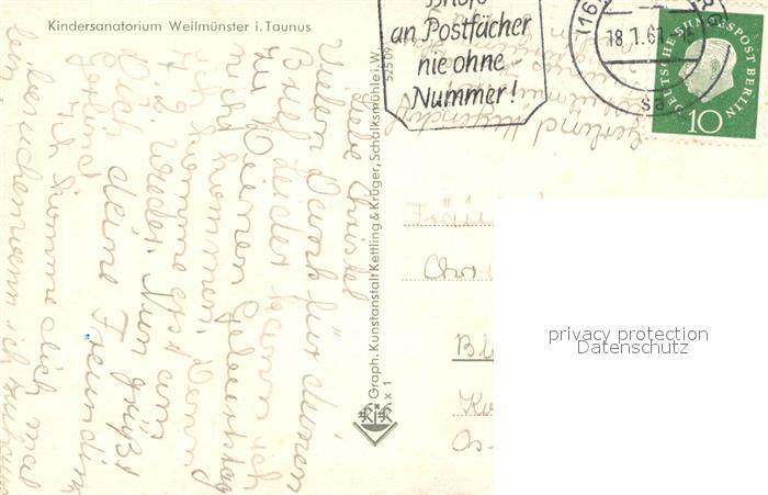 72978104 alte Postkarte Weilmuenster Kindersanatorium Kurheim Haus Berlin im Taunus postalisch gelaufen Erhaltung siehe scans [FriedD77] KatCode: 11110006533018