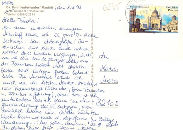 73936072 alte Postkarte Weilrod Ev Familienferiendorf Mauloff postalisch gelaufen Erhaltung siehe scans [WerneD78] KatCode: 11110006434013