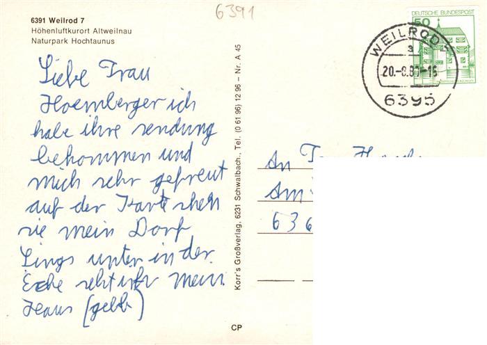 73891016 alte Postkarte Weilrod Fliegeraufnahme mit Altweilnau postalisch gelaufen Erhaltung siehe scans [FriedD77] KatCode: 11110006434013