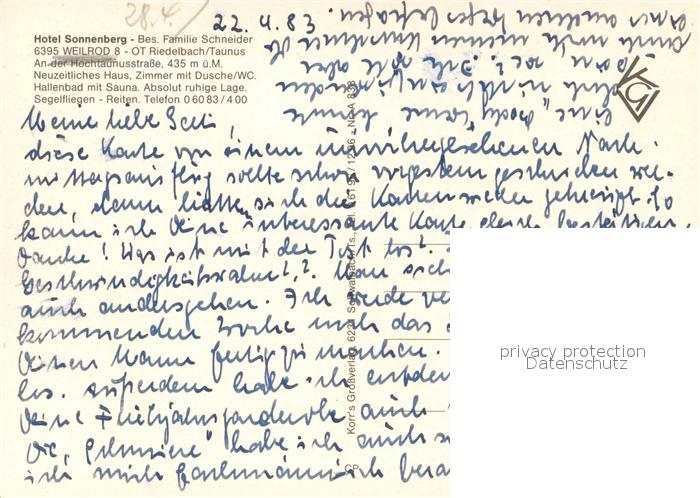 73742490 Weilrod Hotel Sonnenberg postalisch nicht gelaufen Erhaltung siehe scans [WerneD78] KatCode: 11110006434013